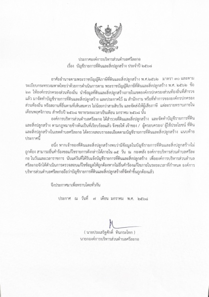 ประกาศองค์การบริหารส่วนตำบลศรีละกอ